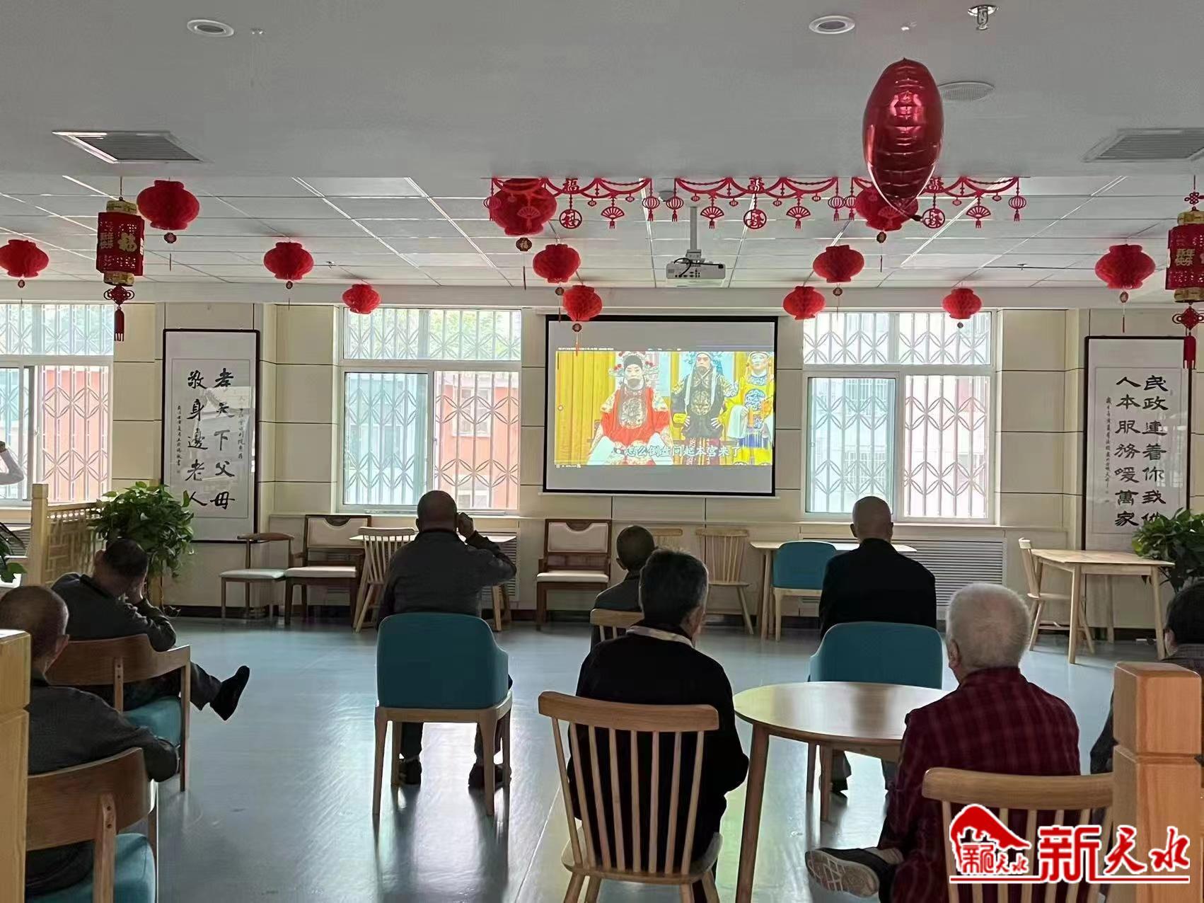 “今天,院里给大家伙组织的活动是集体观看戏曲选段《侧美案》和《白蛇传》。为了让每一位服务对象都能观看节目,我们在每个房间里都有安装电视,部分想集体观看节目的,他们可以走出房间,来到各楼层集中观看点或是到一楼大厅观看。”李龙说。