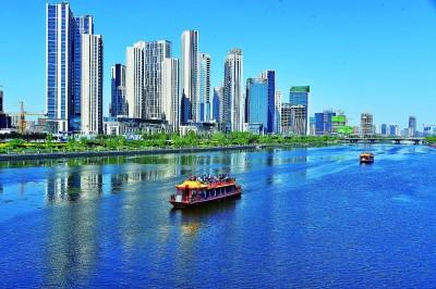 游船驶过位于北京市通州区的运河商务区。新华社发