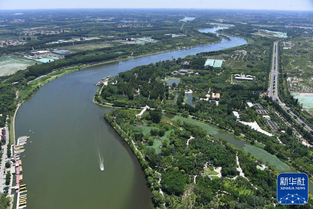 ↑这是位于北京市通州区的大运河森林公园(2020年6月14日摄,无人机照片)。新华社发(常鸣 摄)