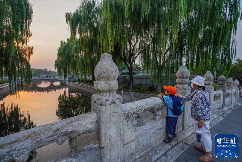 ↑市民在京杭大运河和北京中轴线交汇点的万宁桥上眺望什刹海(2022年9月28日摄)。新华社记者 陈钟昊 摄