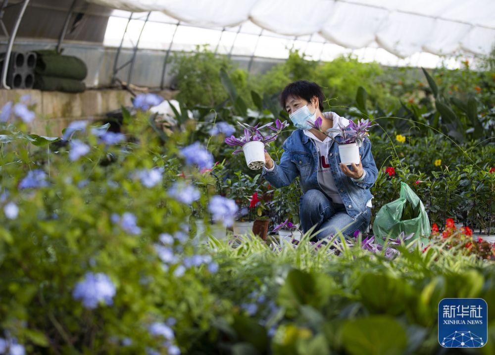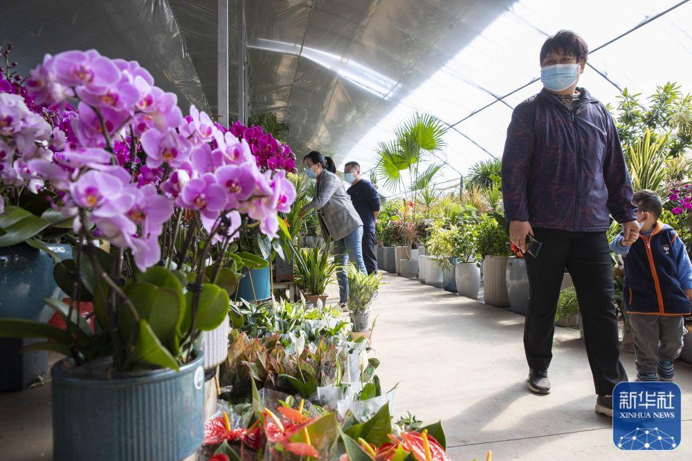 10月6日,市民在银川市贺兰县宁夏丰植源花卉批发市场选购鲜花。新华社记者 杨植森 摄