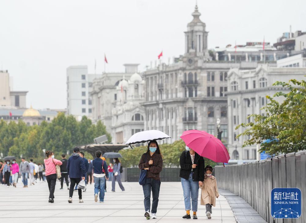 10月6日,游客在上海外滩游览。新华社记者 丁汀 摄