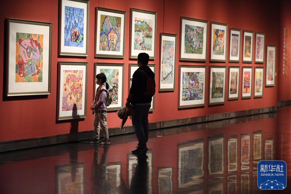 10月6日,观众在江苏省美术馆观看展出的作品。新华社发(杨素平摄)