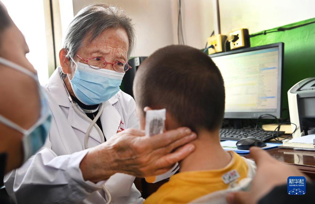 路生梅在陕西佳县人民医院“路生梅诊室”为患儿诊断病情(2022年9月17日摄)。新华社记者 陶明 摄