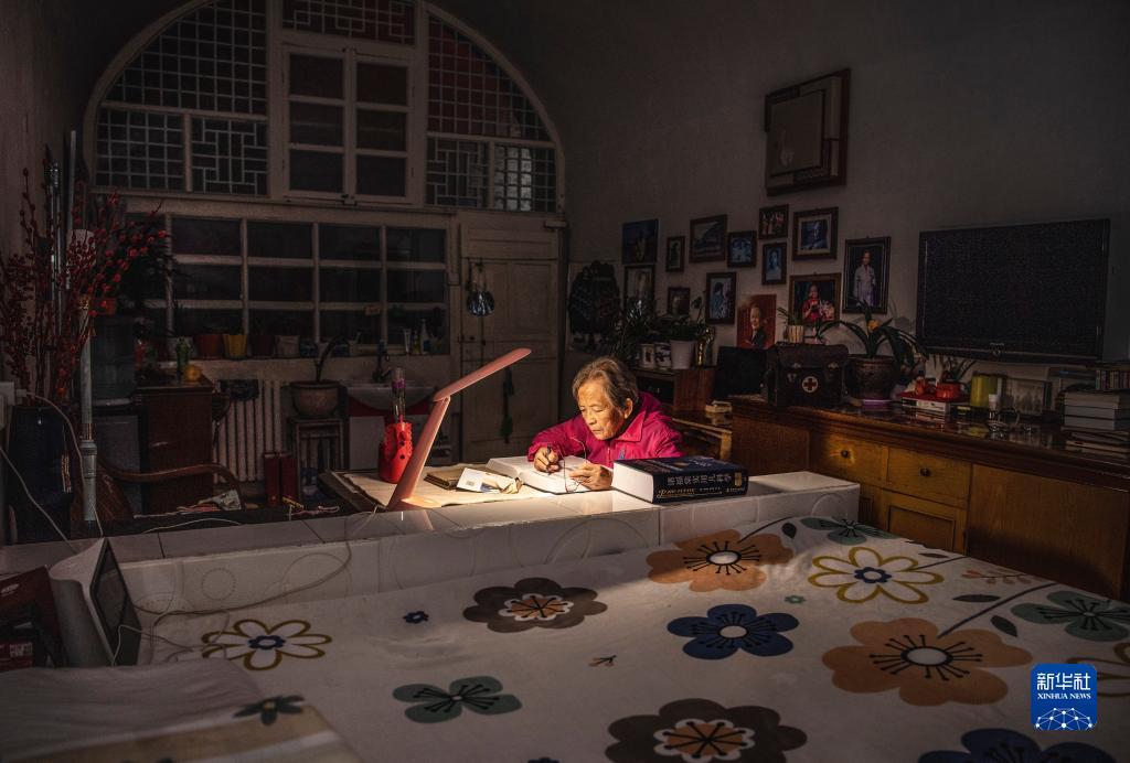 路生梅在窑洞里挑灯学习(2022年9月16日摄)。新华社记者 陶明 摄