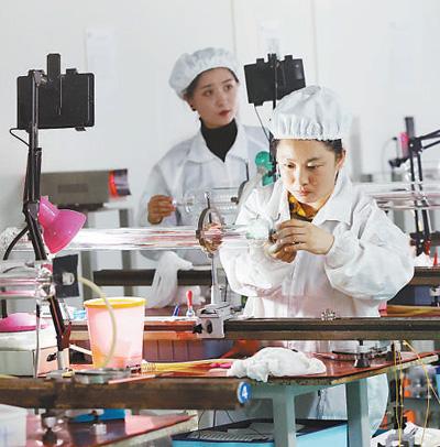 吉林省加快科技创新成果产业化,推动激光产业上下游协同发展,打造具有当地特色的激光产业链。图为位于长春新区的吉林省永利激光科技有限公司员工正在进行产品生产。