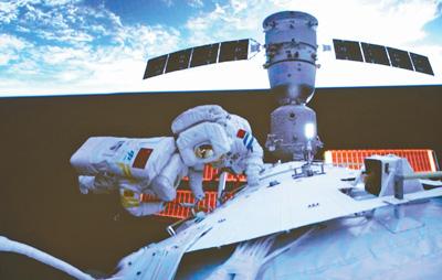 近日,神舟十四号航天员乘组圆满完成第二次出舱活动,创造中国航天员两次出舱活动间隔时间最短纪录,书写了中国探索太空的新篇章。我国航天科技实现跨越式发展,为我国由航天大国迈向航天强国打下坚实基础。图为神舟十四号航天员乘组第二次出舱活动画面。