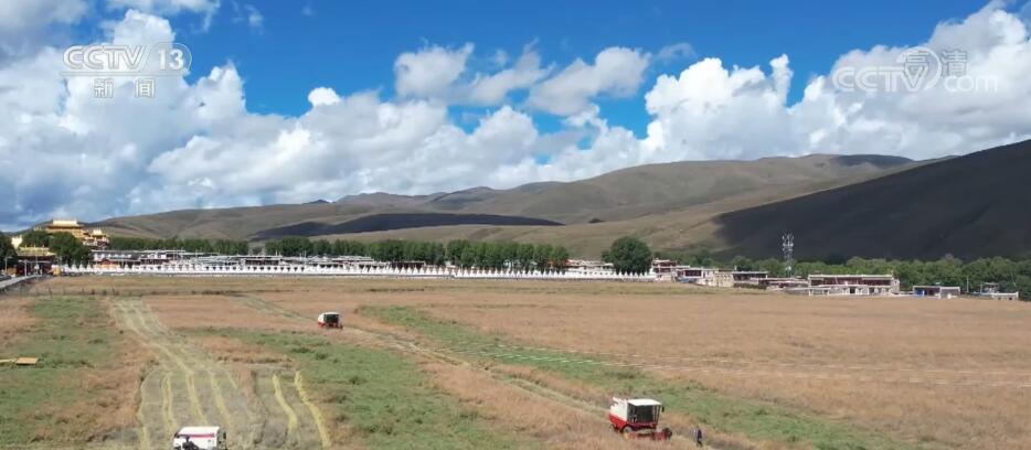 央视网消息:眼下,四川甘孜藏族自治州道孚县的16000多亩油菜籽也相继成熟,轮式收割机来回穿梭于广袤的油菜田里。
