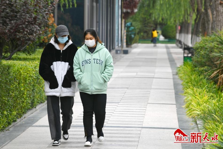 进入深秋,天水的气温骤降。10月11日,在我市城区的街巷、公园、步行街等地,行人纷纷穿起了比较厚的御寒衣物出行。