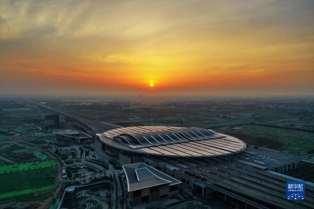 这是京雄城际铁路雄安站(2021年7月1日摄,无人机照片)。新华社记者 牟宇 摄