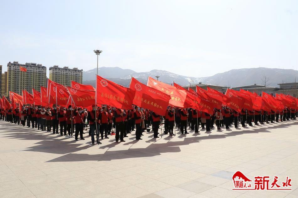 武山县新时代文明实践中心组建党员干部带头,群众积极参与的志愿服务队伍,并根据志愿者的技能特长和服务类别对志愿者进行归口划分,成立各级志愿服务队472个,登记志愿者3.6万余人,全力搭建“1+7+15+450+N”组织有序、互联互通、运行高效的志愿服务网络。