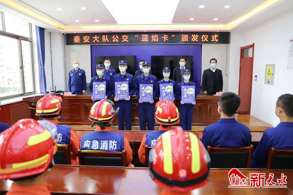 新天水讯【通讯员石建云 吴玉平】10月11日,秦安县向消防救援人员发放公交“蓝焰卡”仪式在县消防救援大队举行,现场向消防救援人员发放公交“蓝焰卡”62张。