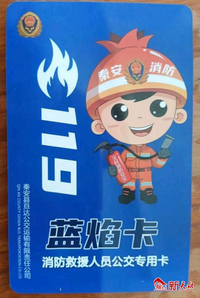 “蓝焰卡”采用实名制方式,免费发放给消防救援大队人员,消防救援大队人员本人持卡可免费乘坐秦安县亘达公交公司的公交车。“蓝焰卡”正面为“火焰蓝”背景,主图案为卡通消防卫士图像,副图案为消防徽标和“119”字样,卡面均有卡号和公交公司名称,卡面背面为使用说明。经秦安县交通运输局、县消防救援大队和亘达公交公司三方讨论,明确了“蓝焰卡”的使用权限、挂失与变更、终止与解释等事宜。