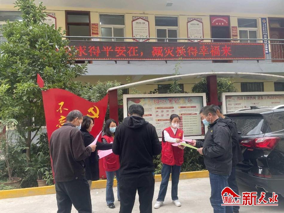 该社区通过电子显示屏、悬挂横幅、发放防灾减灾知识手册和防灾减灾宣传资料、使用小喇叭播放防灾减灾知识等方式,向群众普及暴雨应对、地质灾害逃生、防溺水、消防、自建房安全自查自检等一系列应急知识。此次宣传共发放“防灾减灾知识手册”80余份,有效提高了干部群众的防灾减灾能力。