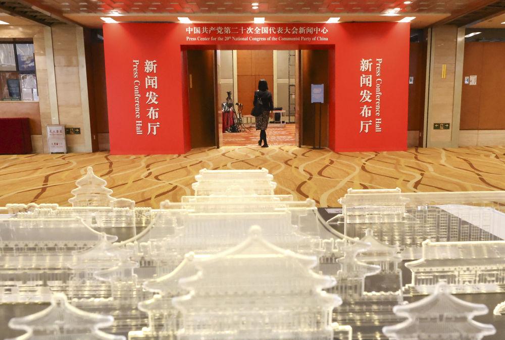 “热烈欢迎中外记者朋友采访中国共产党第二十次全国代表大会”——醒目的标语,悬挂的中国结,鲜红的背景板,布置一新的采访间……在北京梅地亚中心和北京新世纪日航饭店党的二十大新闻中心,随处可以感受到盛会将至的热烈气氛。