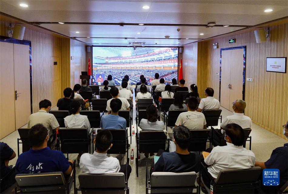 10月16日,在吉林省长春市,长光卫星技术股份有限公司科研人员收看中国共产党第二十次全国代表大会开幕会。
