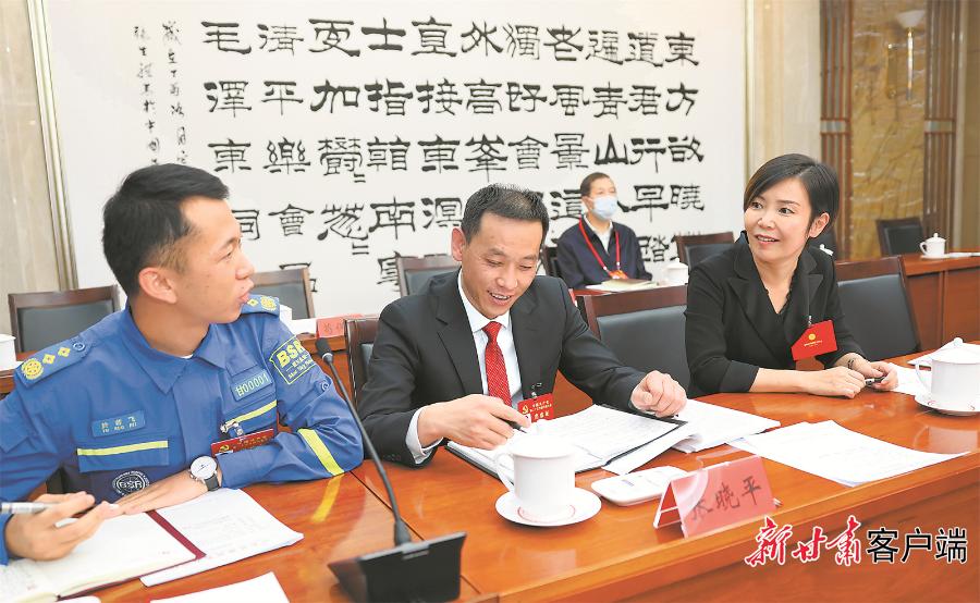 10月17日,甘肃省代表团代表相互交流,认真履职。新甘肃·甘肃日报记者高樯