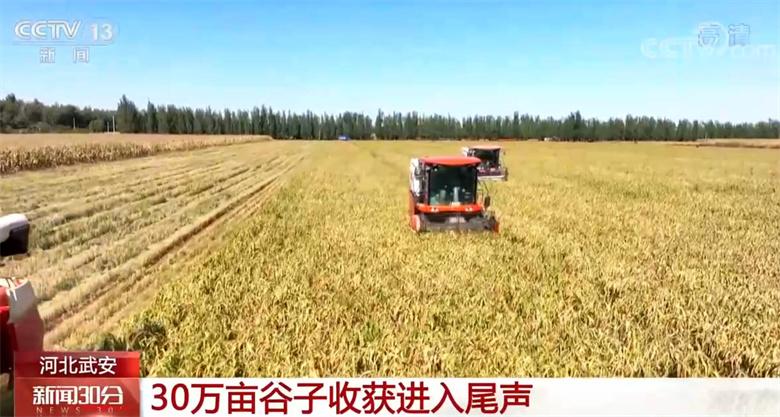 在河北武安,当地三分之一的耕地面积种植谷子,是农民的重要经济来源,目前30万亩谷子收获已接近尾声。武安是河北省农科院谷子研究所的试验示范基地,所有的谷子新品种、新技术都要在此进行试验试种,再进行大面积推广。今年当地谷子亩产达到350公斤左右,比去年增产将近10%。当地利用全程机械化作业,每亩地可节约用工6—8个,节省近500元的种植成本。谷子种植正成为当地促进农民增收、壮大集体经济的优势产业。