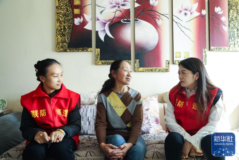 10月16日,青海省西宁市城西区文汇路街道文亭巷社区党委书记刘翠青(右)到社区居民家中走访。新华社记者 张龙 摄