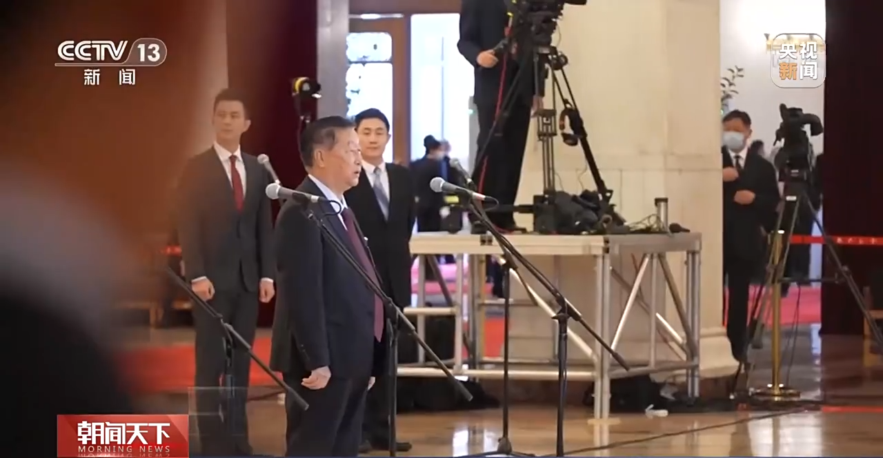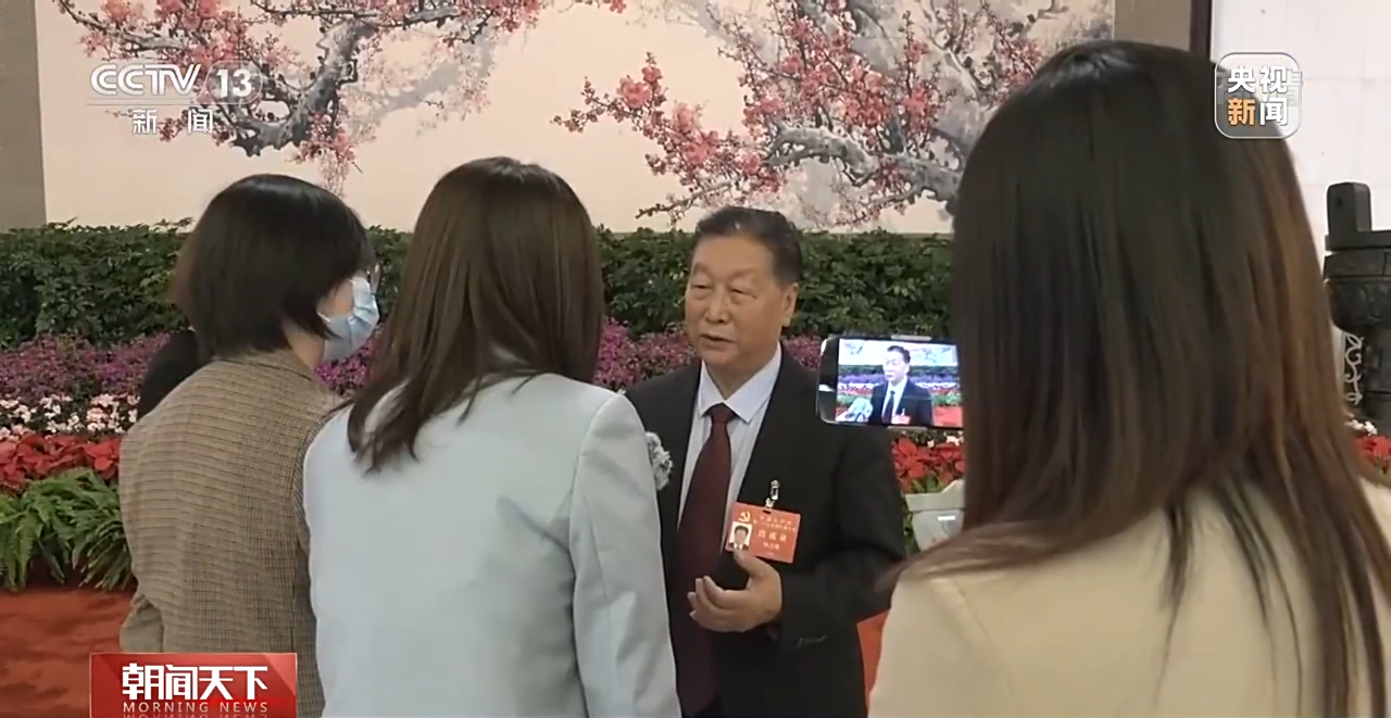 结束单独采访后,朱有勇代表并没有进入会场,而是驻足在通道边。他的目光始终追随着菌草技术发明者林占熺,电视剧《山海情》中农技专家的原型。