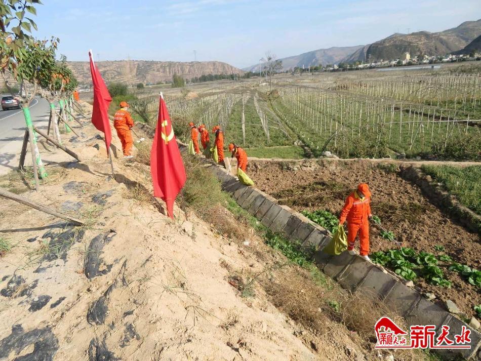 新天水讯 10月17日,甘谷公路段组织全段职工在国道310线开展“全域无垃圾整治月”劳动竞赛活动。