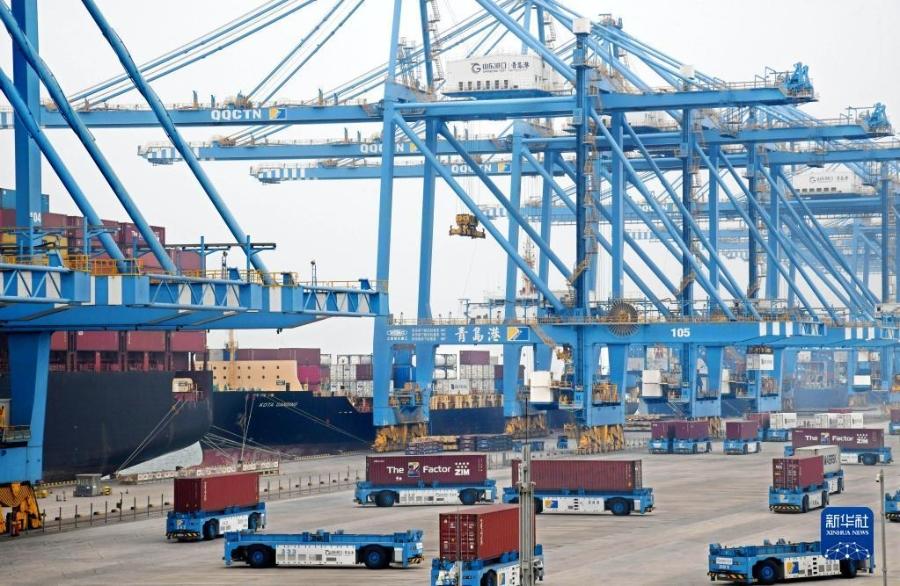 作业中的山东港口青岛港全自动化集装箱码头(10月16日摄)。新华社记者 李紫恒 摄