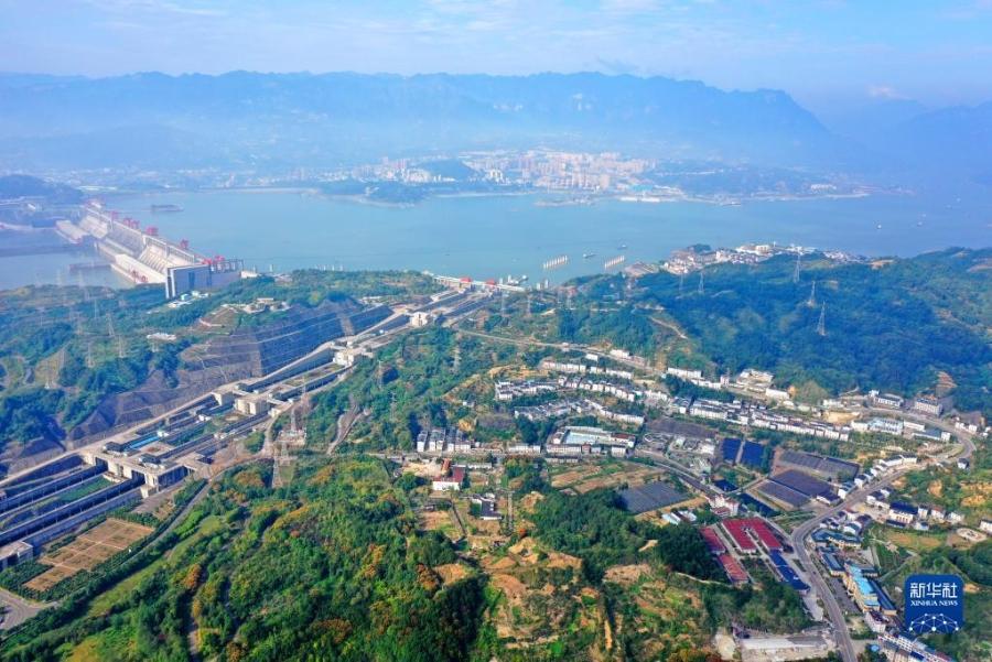 这是位于三峡工程大坝坝头北岸的湖北省宜昌市夷陵区太平溪镇许家冲村(10月16日摄,无人机照片)。新华社发(张国荣 摄)