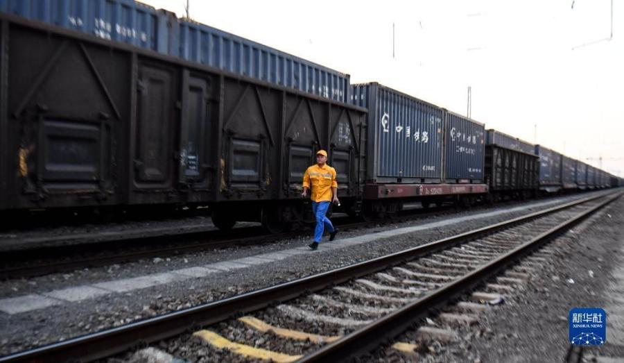 10月16日,在中国铁路南宁局集团有限公司钦州港站,检车工长林江波走在去接班的路上。新华社记者 张爱林 摄
