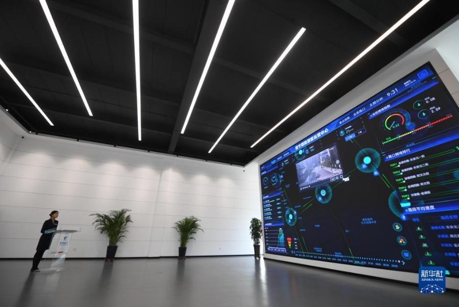 10月16日,河北雄安新区中国电信智慧城市产业园工作人员展示数字道路运营系统。新华社记者 朱旭东 摄