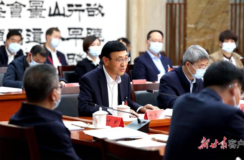 ▲甘肃省代表团牛文斗代表讨论发言。新甘肃·甘肃日报记者 高 樯