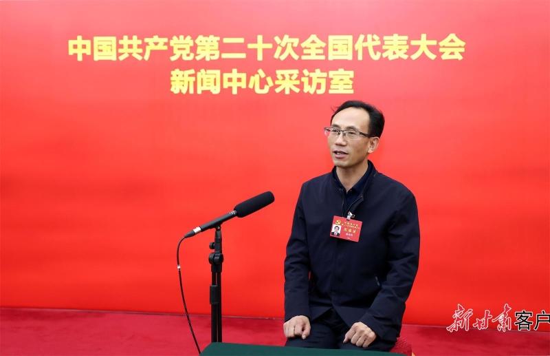 ▲甘肃省代表团潘从明代表接受媒体采访。