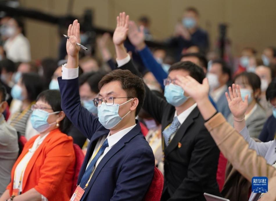 10月19日,中国共产党第二十次全国代表大会新闻中心举行集体采访。山东、河南、湖北、湖南、广东、广西、海南代表团新闻发言人出席,介绍代表团学习讨论二十大报告情况,并回答记者提问。新华社记者 张玉薇 摄