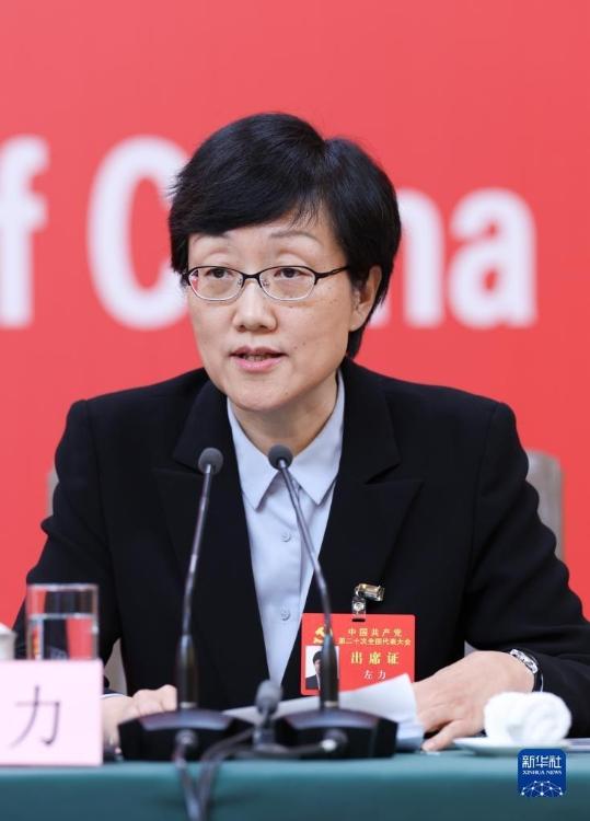 10月19日,中国共产党第二十次全国代表大会新闻中心举行记者招待会。中央政法委副秘书长訚柏,最高人民法院党组副书记、分管日常工作的副院长、一级大法官贺荣,最高人民检察院党组副书记、分管日常工作的副检察长、一级大检察官童建明,公安部党委委员、副部长、国家移民管理局党组书记、局长许甘露,司法部党组成员、副部长左力围绕“坚持以习近平法治思想为指引 努力建设更高水平的法治中国”主题与记者交流。新华社记者 张玉薇 摄