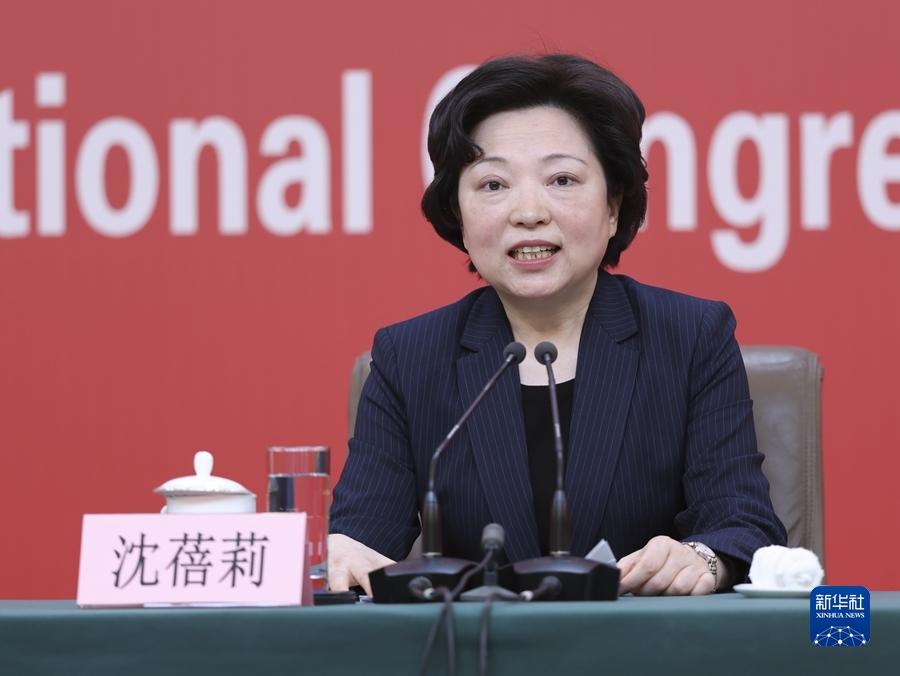 这是沈蓓莉在记者招待会上。