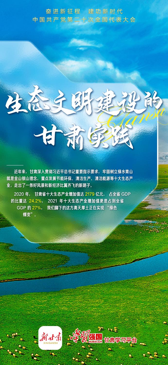 近年来,甘肃深入贯彻习近平总书记重要指示要求,牢固树立绿水青山就是金山银山理念,重点发展节能环保、清洁生产、清洁能源等十大生态产业,走出了一条好风景和新经济比翼齐飞的新路子,我们脚下的这方高天厚土正在实现“绿色蝶变”。