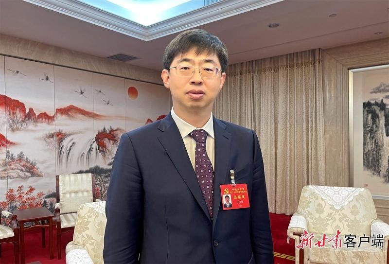 ▲党的二十大代表康琦接受媒体记者采访。