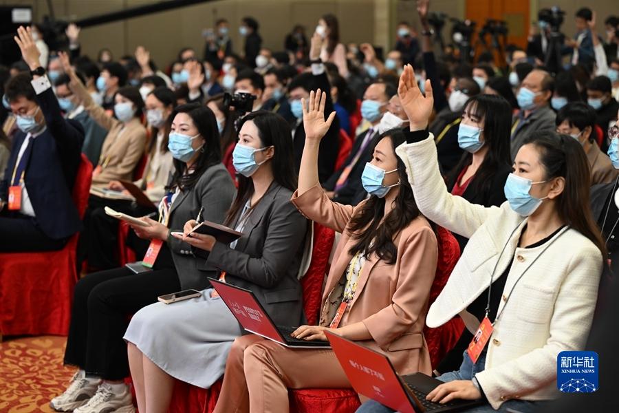 这是记者在分会场举手提问。新华社记者 金良快 摄