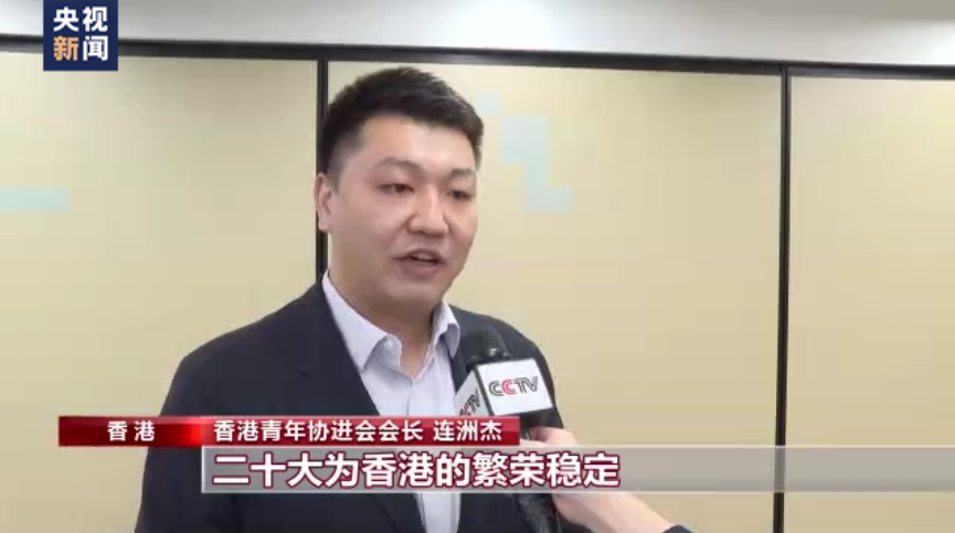 香港青年协进会会长 连洲杰:二十大为香港的繁荣稳定,为香港推进由治及兴的新阶段注入了新的动力,习近平总书记提到人才是第一资源,创新是第一动力,我相信香港青年会围绕着二十大的宏伟蓝图发挥自身的优势,为祖国的伟大复兴作出新的贡献。