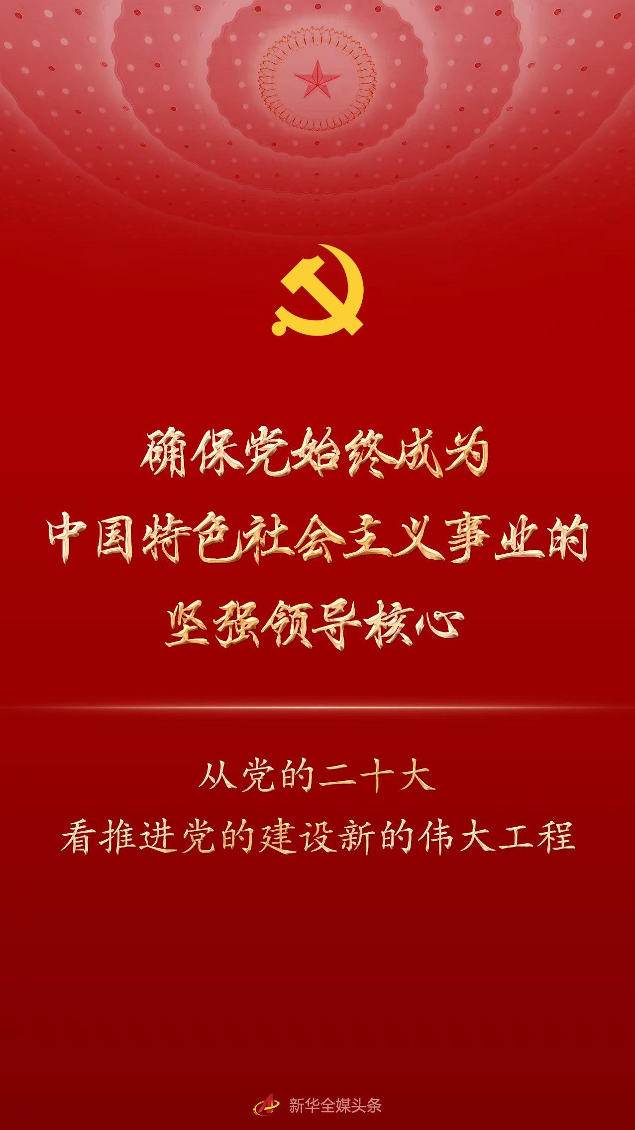 新华社北京10月21日电 题:确保党始终成为中国特色社会主义事业的坚强领导核心——从党的二十大看推进党的建设新的伟大工程