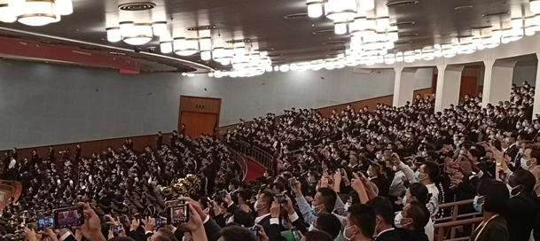 2022年10月16日,人民大会堂,记者们拍照记录中国共产党第二十次全国代表大会开幕会。迈克尔·奥格伯德摄