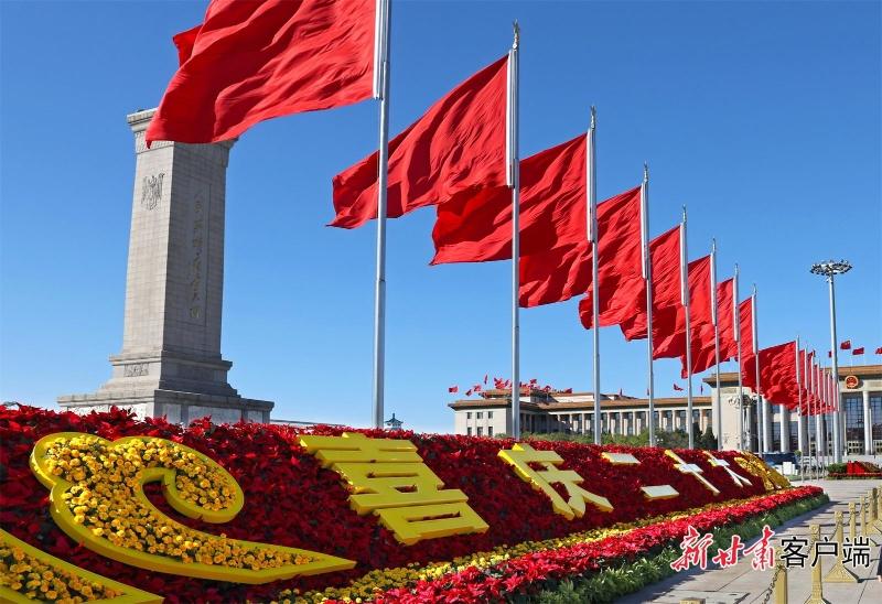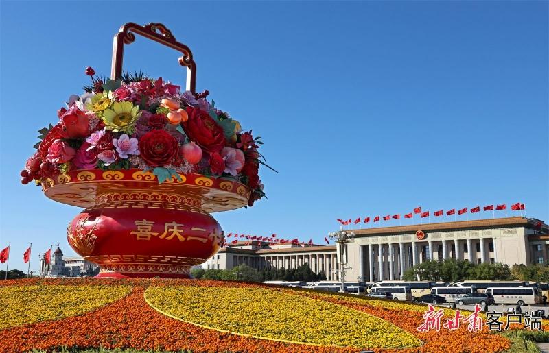多次见证重大历史时刻的天安门广场,花团锦簇、红旗招展。