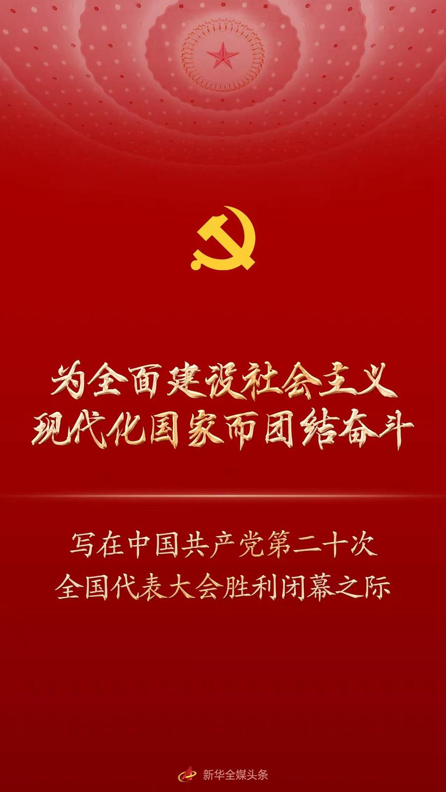 新华社北京10月22日电 题:为全面建设社会主义现代化国家而团结奋斗——写在中国共产党第二十次全国代表大会胜利闭幕之际