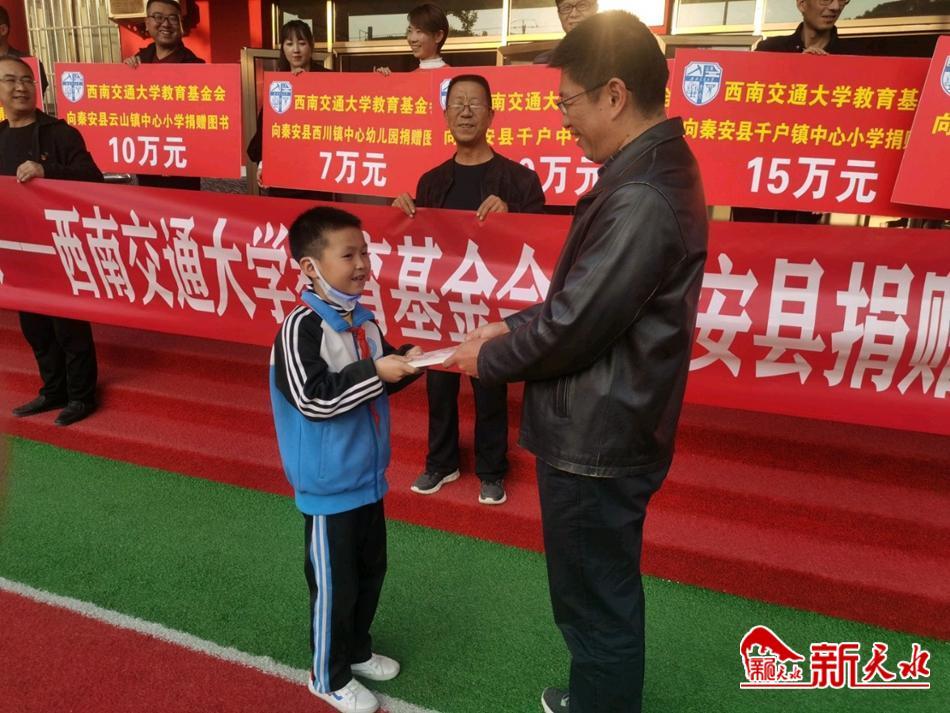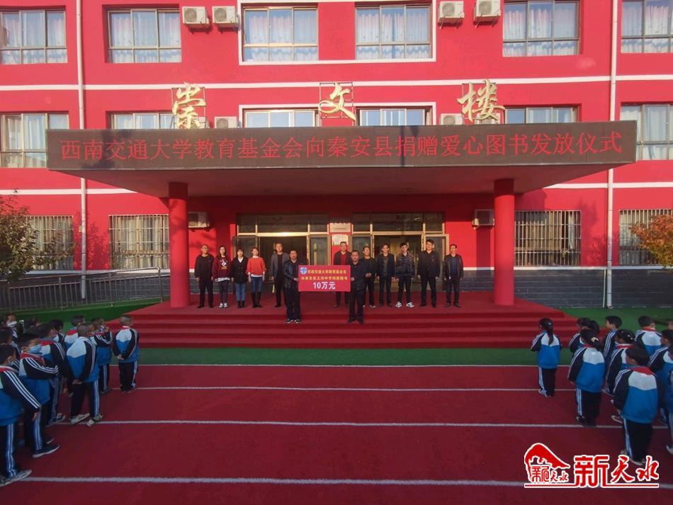 新天水讯【特约通讯员 李晓兵】10月20日,西南交通大学教育基金会向秦安县捐赠了价值105万元的图书,图书发放仪式在王尹镇中心小学举行。