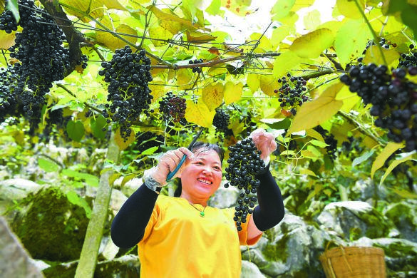“今年毛葡萄刚刚销售完毕,总产量超13万公斤,产值约80万元。”基地负责人、“90后”返乡创业大学生蓝钧说,毛葡萄生命力旺盛,向下扎根、向上攀爬,一株甚至可覆盖1亩石山,可有效防止水土流失。