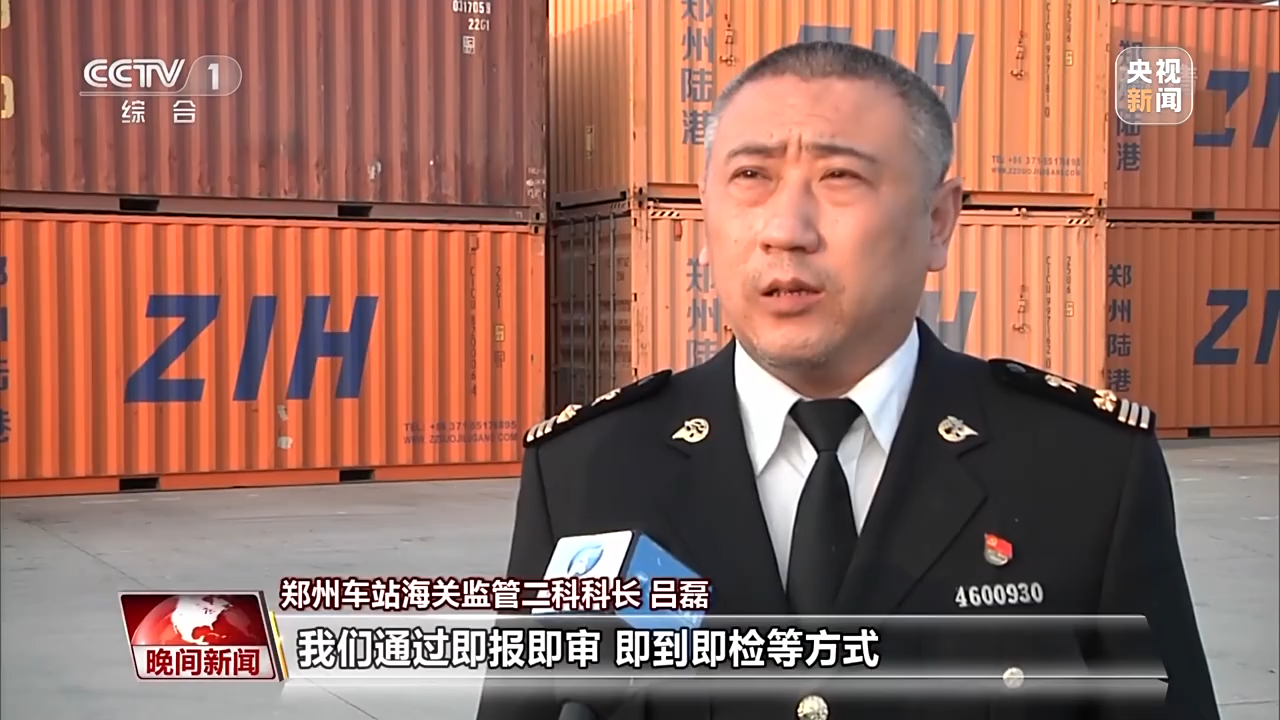 郑州车站海关监管二科科长 吕磊:我们通过即报即审、即到即检等方式,缩短汽车出口整体通关时间及口岸停留时间,实现口岸通关无缝隙、零等待。