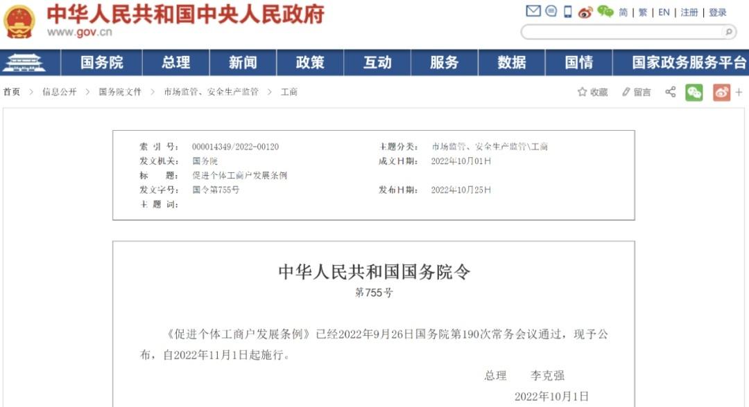 近日,国务院发布《促进个体工商户发展条例》,自2022年11月1日起施行。