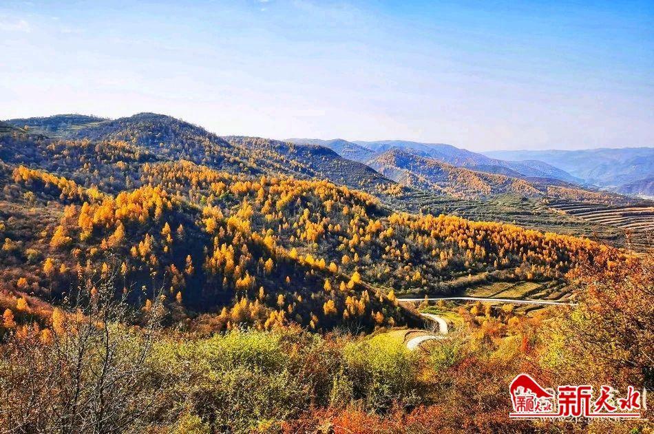 深秋时节,行走在张家川县闫家乡张风台至草川梁一带,山河辽阔,蓝天白云间,五彩斑斓的山林宛如大自然打翻的调色盘一般,绚烂多彩、美不胜收。