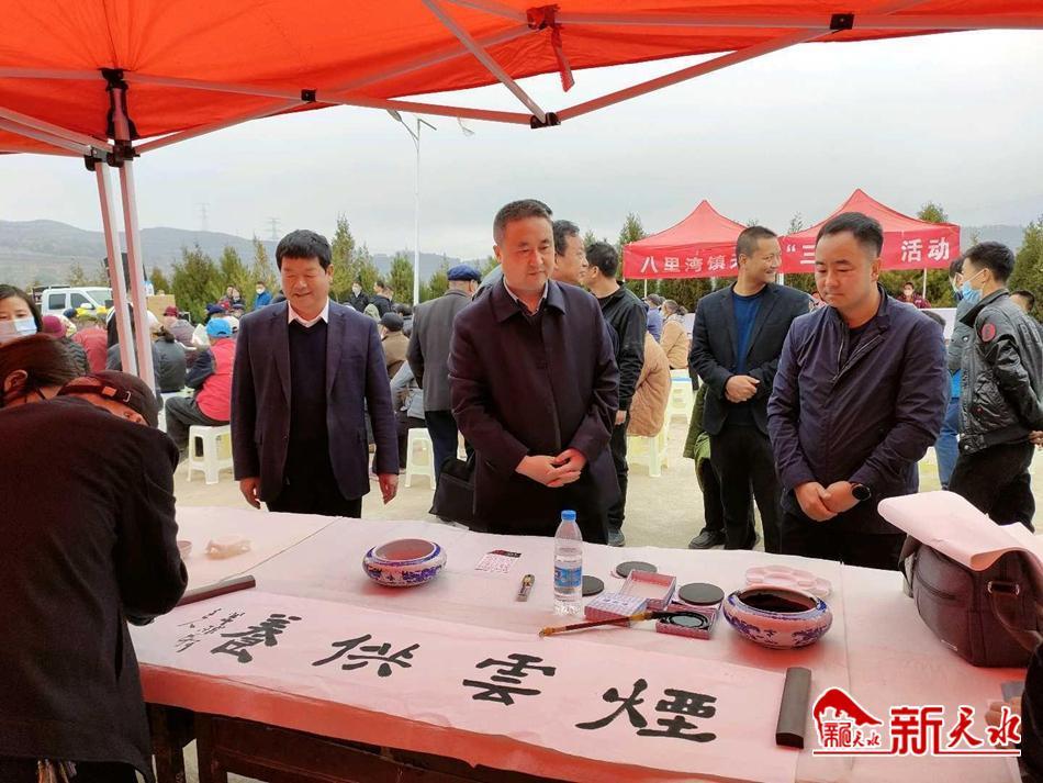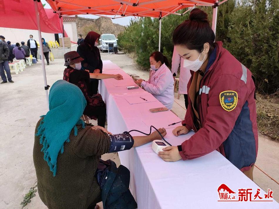 在活动现场,农工党天水市委、甘谷县委统战部、农工党甘谷总支和八里湾镇的工作人员向群众送字画、发放慰问物资,安排由医护人员组成的专业团队开展健康义诊服务,为村民提供免费测量血压、血糖、健康咨询等服务。