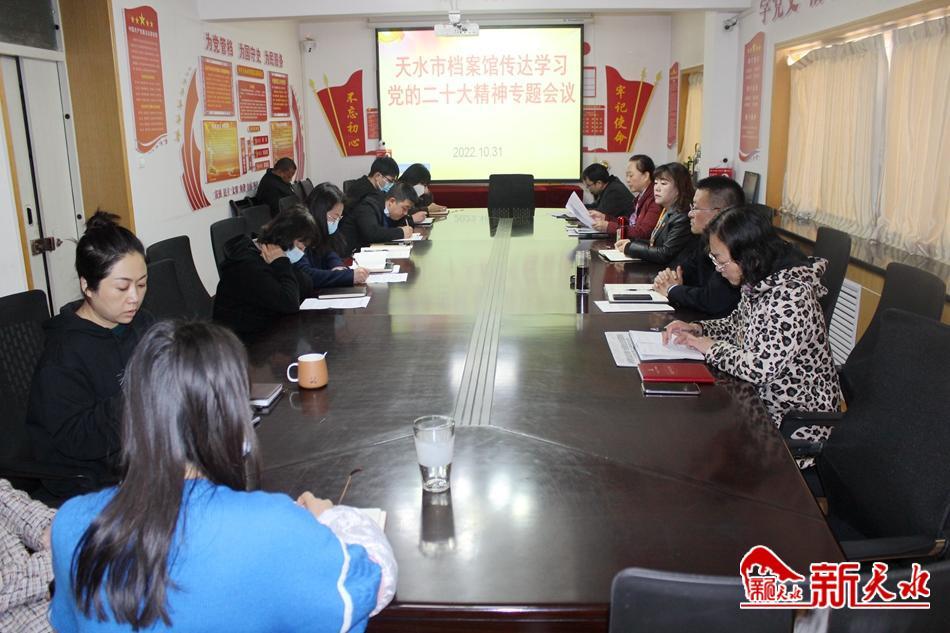 新天水讯【记者 孙镇】10月31日上午,天水市档案馆召开专题会议,传达学习党的二十大精神。全体党员干部职工参加会议。