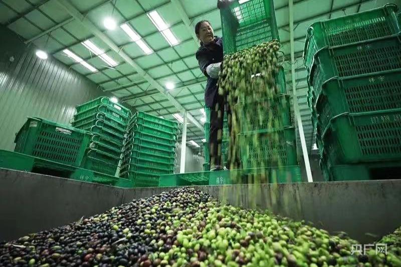 橄榄油加工企业集中处理油橄榄果(央广网发 李董 摄)